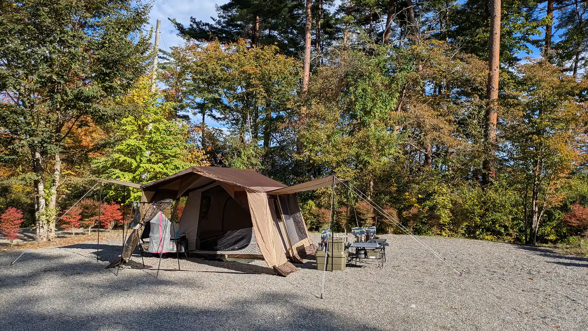 今回は山梨県北杜市白州町にあるキャンプ場に2泊した。FLAMME日向山オートキャンプサイトは標高800mの山中にあり、小規模なのでゆったりキャンプを満喫できる。