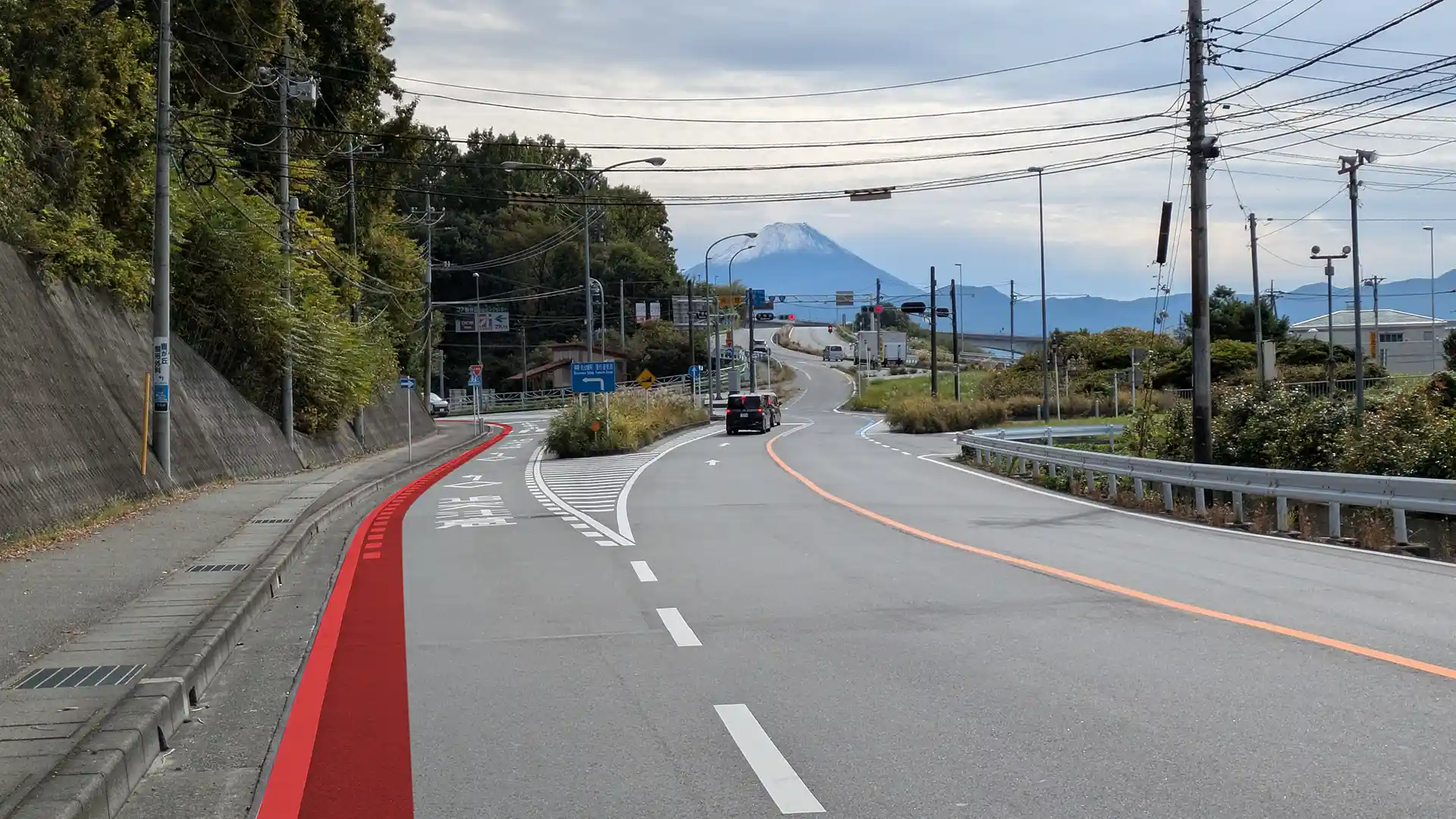 甲府柳町宿までの甲州道中(旧甲州街道)は、富士山を正面に見ながら走れる。