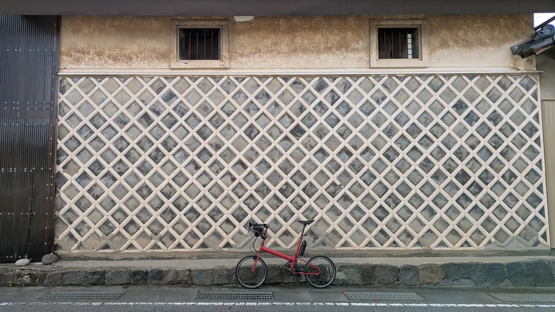 志田を通過。相変わらず街道の脇には民家が続いていた。民家は瓦屋根が多く、所々、下図のようななまこ壁の家もあった。