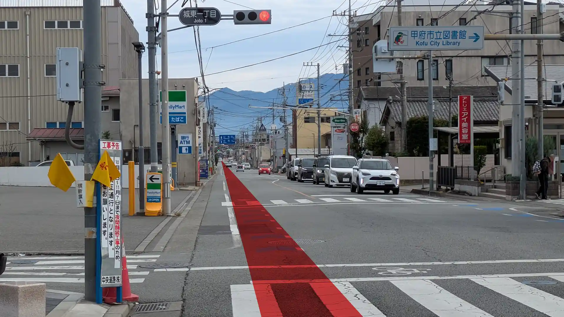 甲府駅が近づき、いよいよ甲府柳町宿が近づいくると、道路がクランク状に曲がってきた。