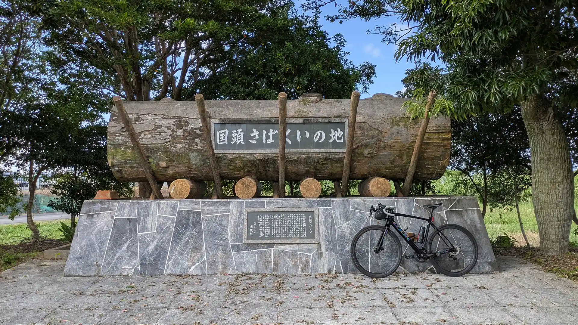 道の駅の手間に、「国頭さばくいの地」というモニュメントがあった。「国頭さばくい」とは木遣り(きやり)歌のこと。