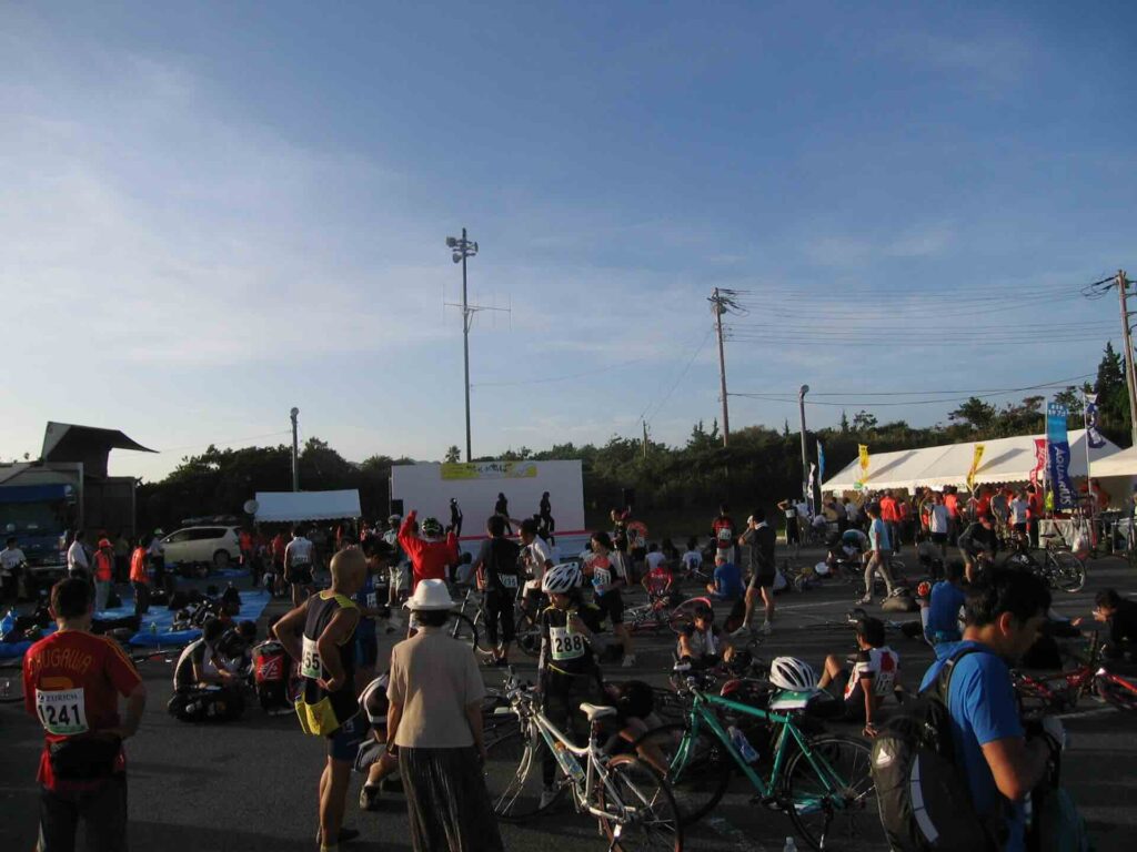 ステージ3の朝。のんびりとコーヒーすすってマッタリしてたらスタート時間の30分前になってしまった。大急ぎで支度をして出かける。会場まで13kmもあるというのに・・・途中のコンビニでおにぎりを買って、走りながら朝食。