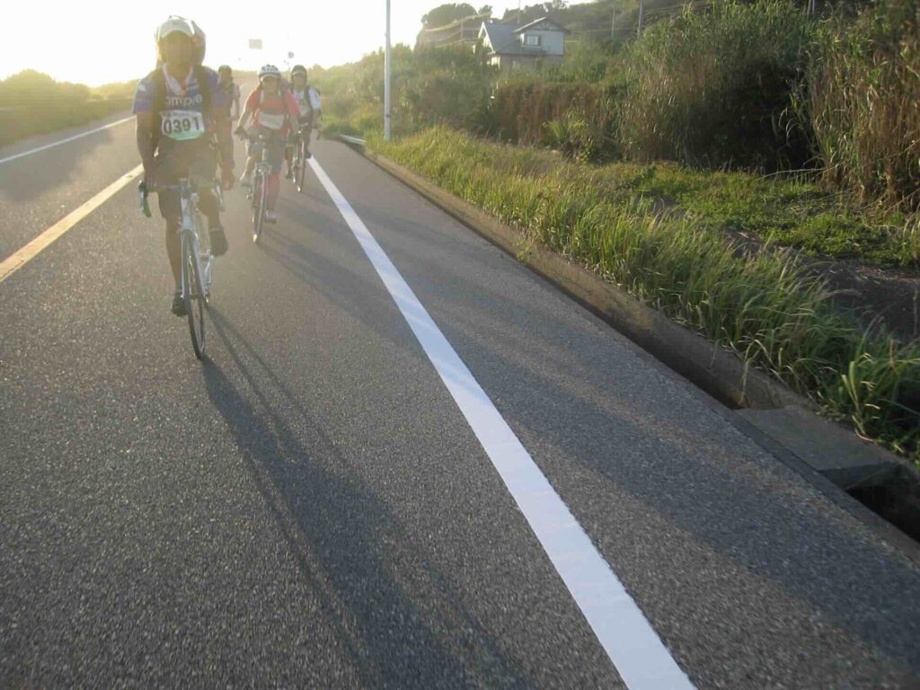 と何人もが叫ぶ声がした。私のいた集団の後方で落車があったらしく隊列が乱れた。先頭を走る指導員がUターンして救助に向かったが、我々参加者は、次々に脇を走り抜けるクルマに注意しながら前進。振り返って見ることすらできなかったが、O君の証言によると