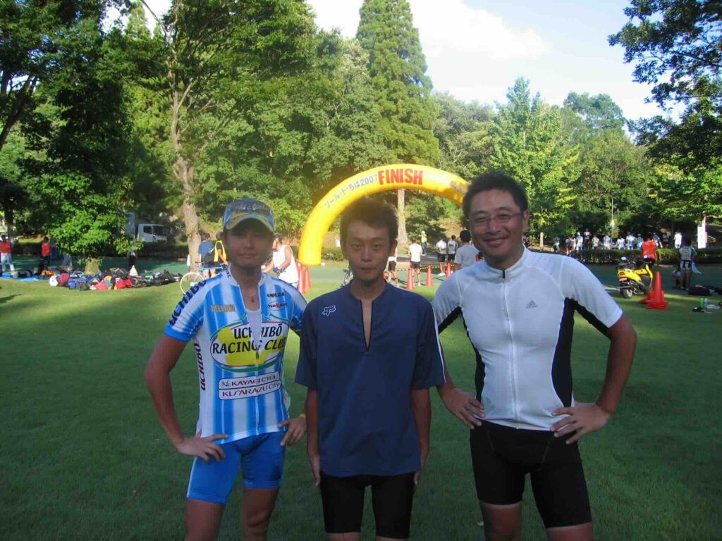 一緒に走った同僚のK君(大会指導員)、O君、そして僕。
