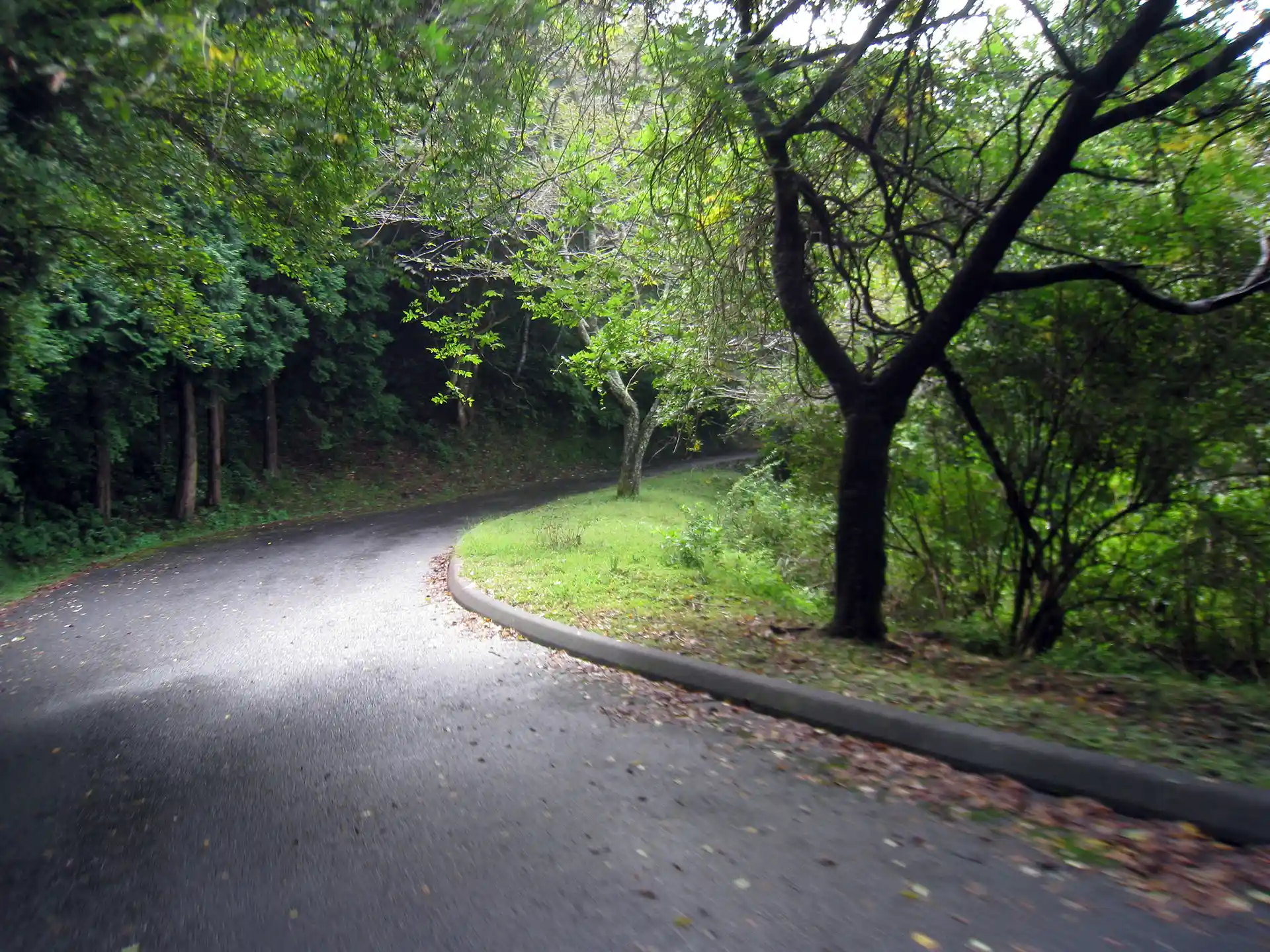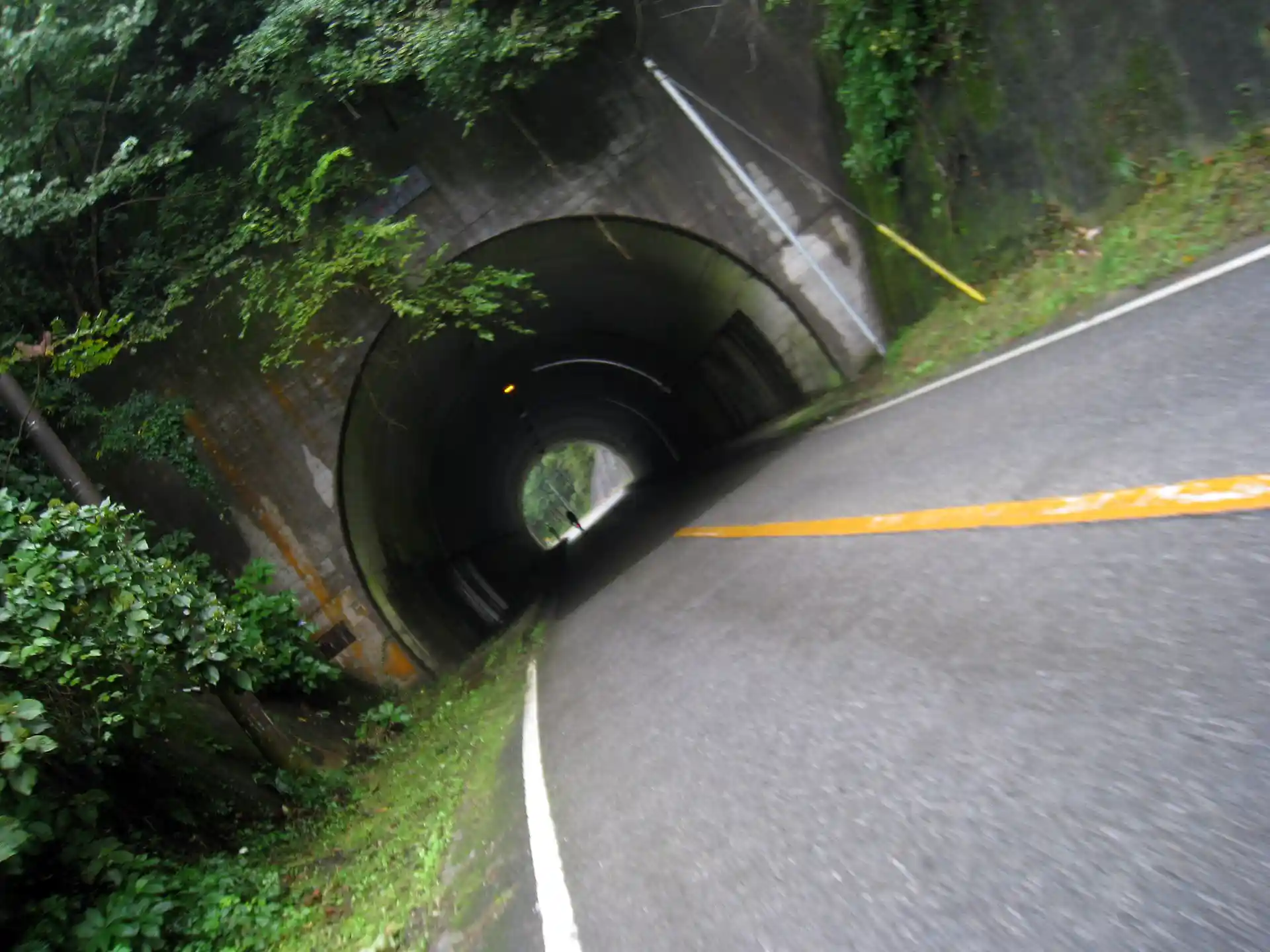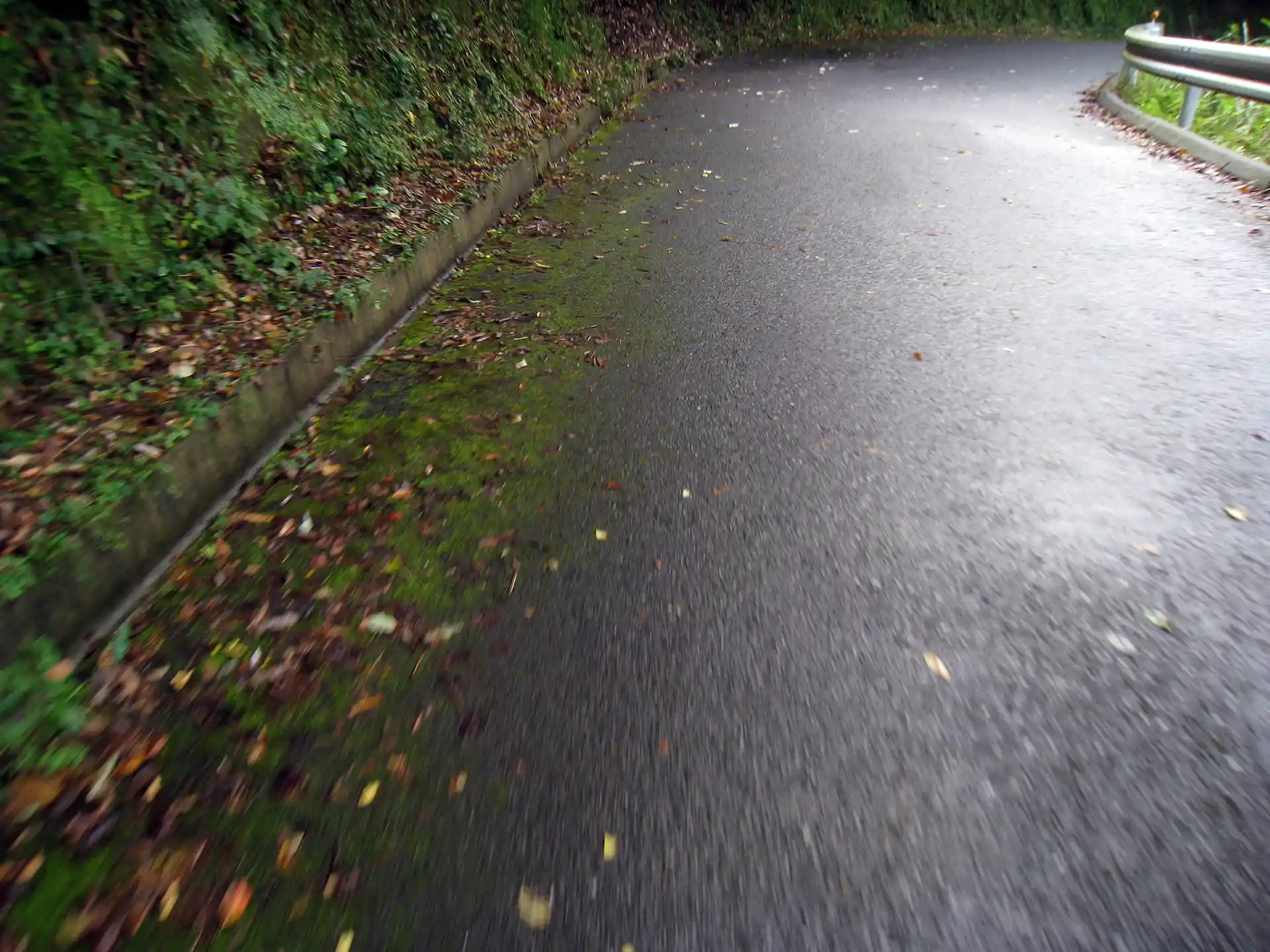 晴れた日なら気持ちがよさそうなワインディングロードだが、この日はウェット。しかも・・・