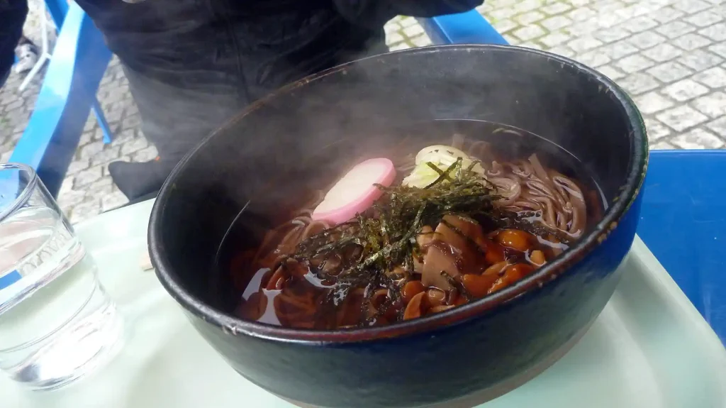 歯を食いしばってクランクを回すと都民の森に到着。標高が1,000m近くで、風もあったので寒かった。露店のだんご汁などを補給して体を温めて小休止。