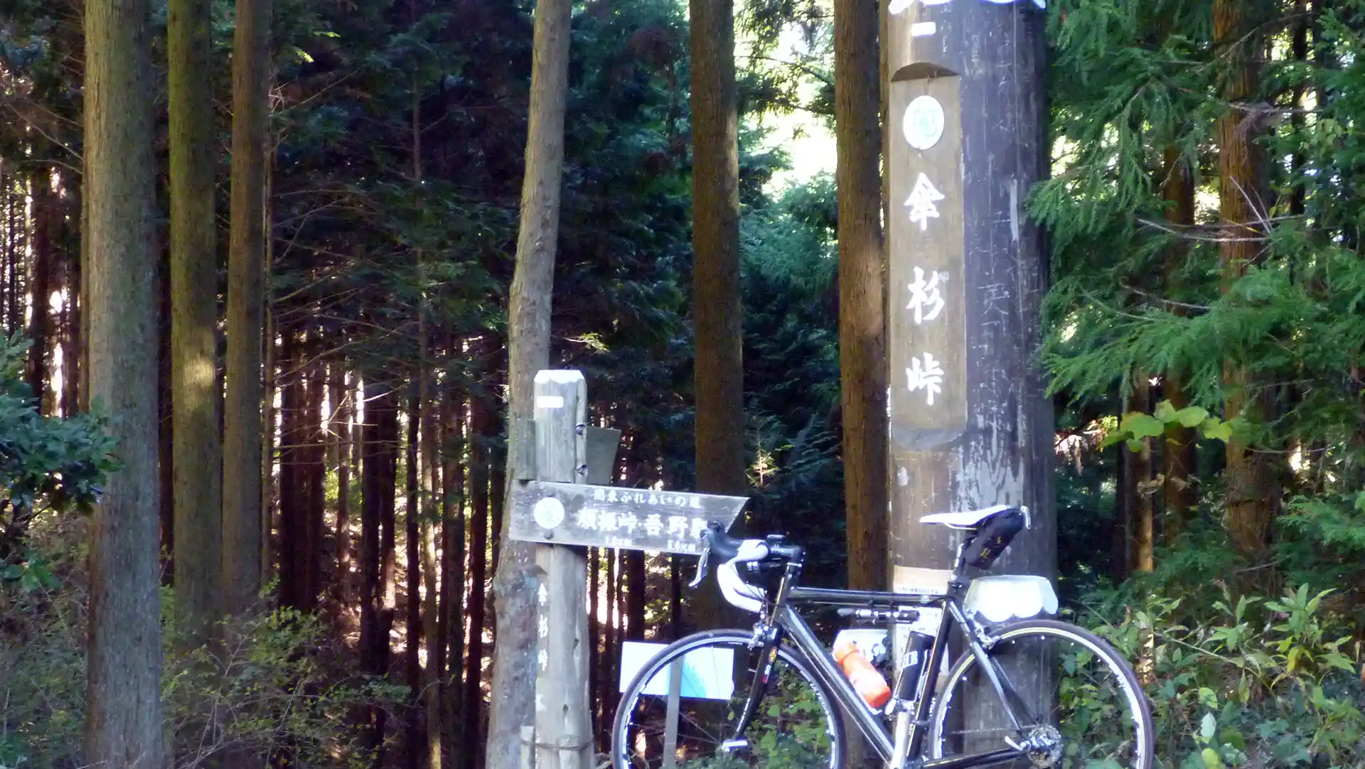 傘杉峠・檥峠・刈場坂と峠が続く。山の中はとても静か。車が少ないので、漕ぐ足を止めて立ち止まると音が無くなる。