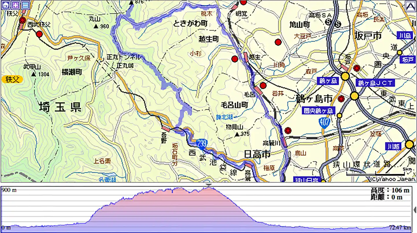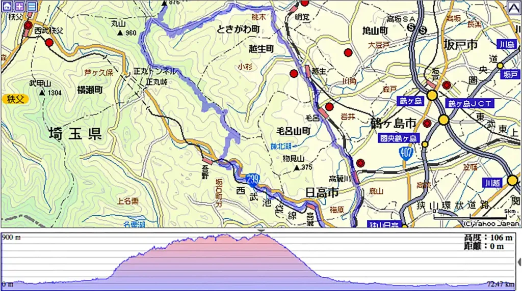 8時過ぎに飯能駅からスタート。飯能駅北口からすぐにアクセスできる国道299号線を左へ進んだ。