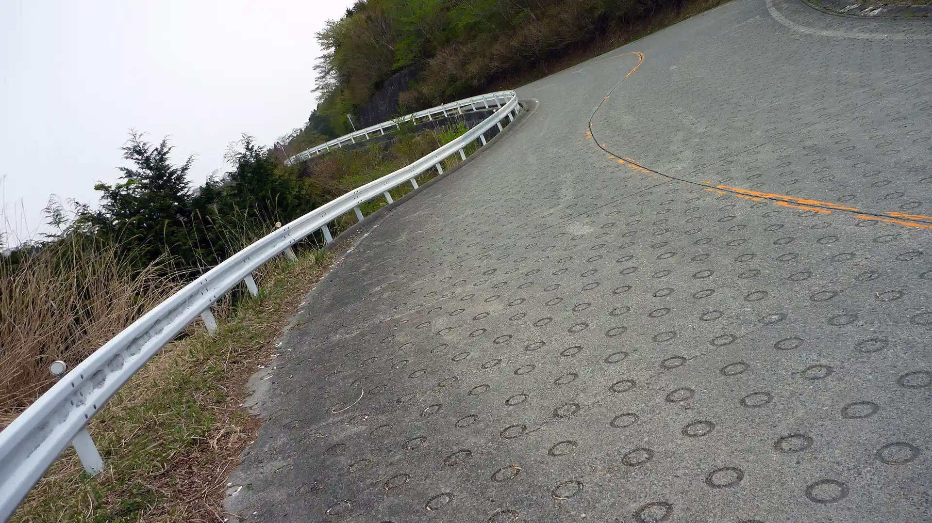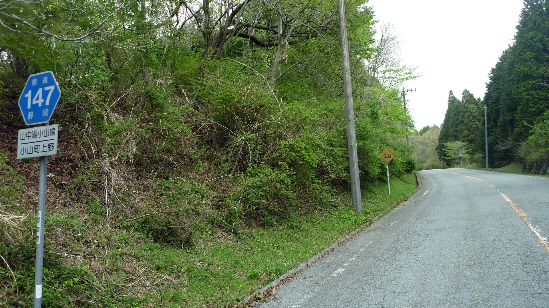 県道147号線はいきなり激坂でした。息をつく間もなく標高900m近くまで上った(スタート地点は標高250m)。途中に10%超えの坂もあって、全身の力を使わないと上っていけない。