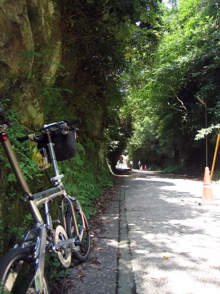 一度、鎌倉駅に戻り『亀ヶ谷坂の切り通し』を通って円覚寺へ。この切り通し、BD-1の小径ホイールを持ってしても登ること困難。歩いた。悔しいので勾配をペットボトルで計測。平均斜度が8〜9度らしい。