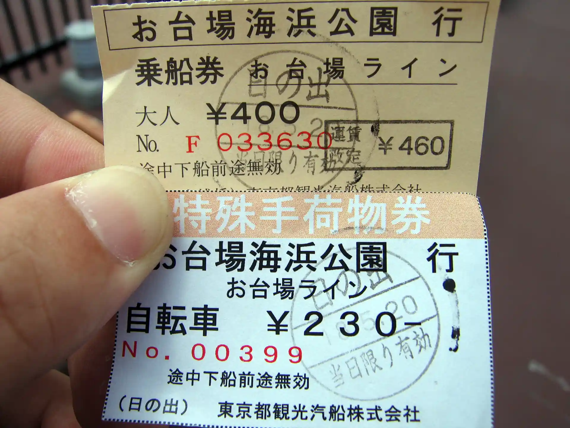 ここから水上バスでお台場まで輪行。水上バスに自転車を積み込むためには、運賃の他に特殊手荷物券が必要。