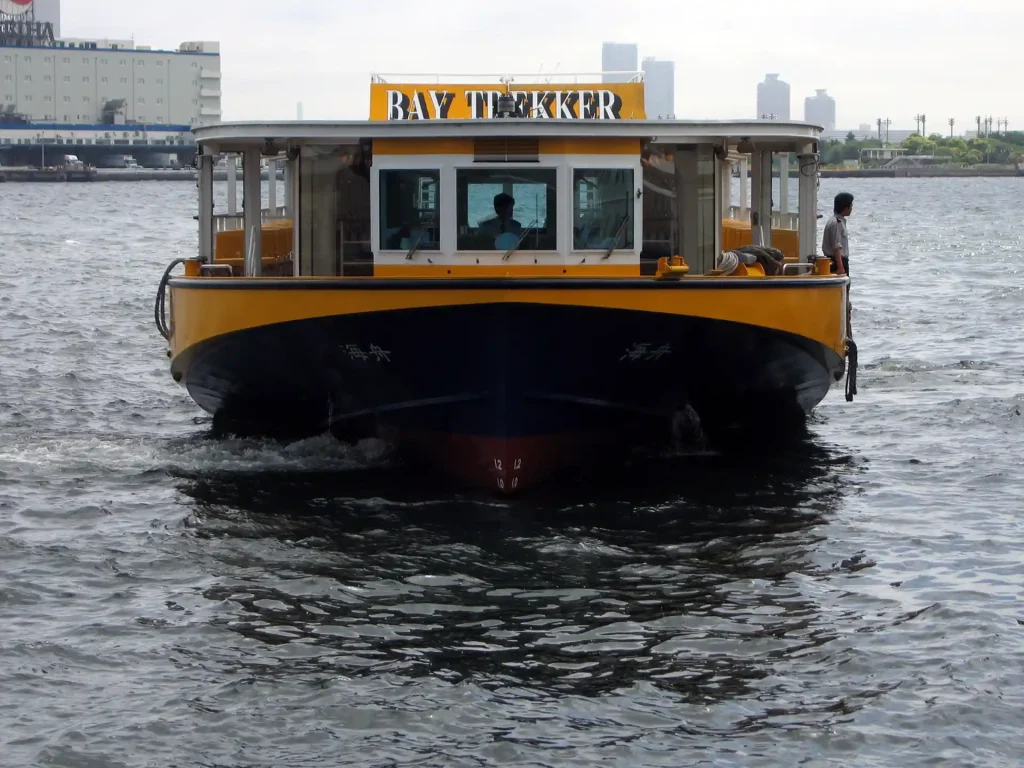 「自転車は後部デッキの壁にたてかけて」とキャプテンに指示され、お台場ラインの水上バスに乗り込んだ。船内は空いていた。