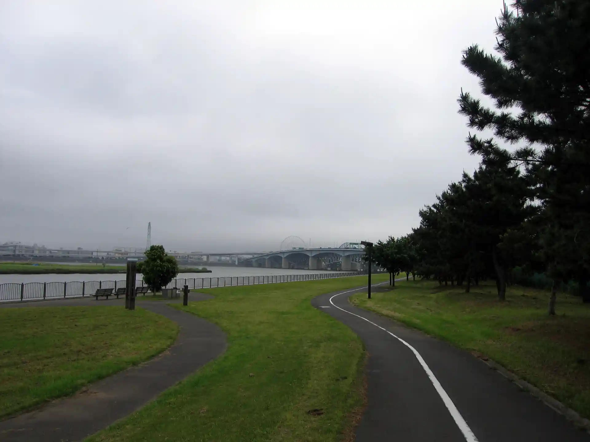 夢の島緑道公園の東端には荒川があり、東京港への河口となっている。荒川は渡らず、南に下り新木場緑道公園方面へ進んだ。公園内の道は、左手に海を見ながら走ることが出来て素晴らしかった。